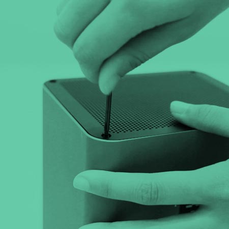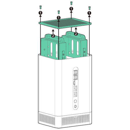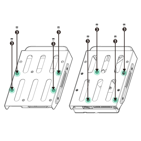 3使用螺絲包中的螺絲,並依硬碟尺寸將硬碟鎖上對應的鎖點。